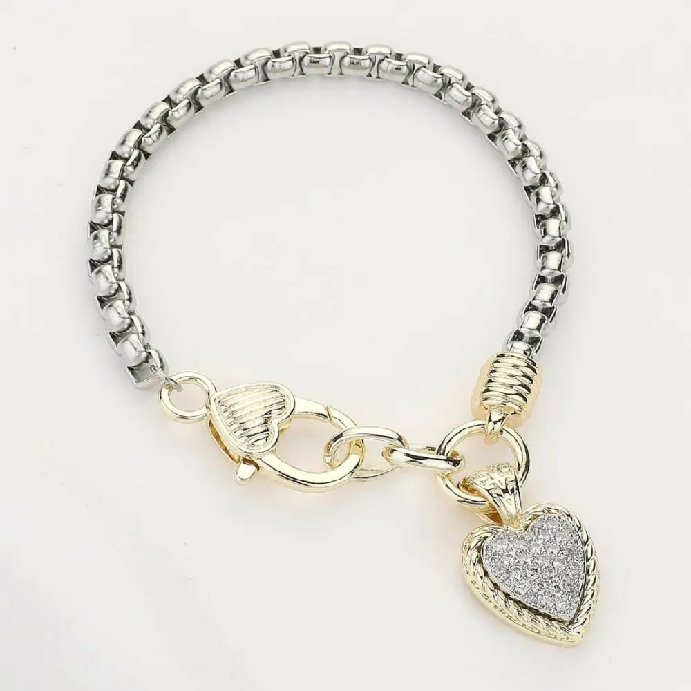 CZ stone paved heart charm bracelet